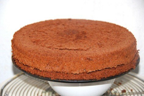 - Bánh cắt làm 3 hay 4 tầng đều nhau. Cứ 1 lớp bánh thì dùng chổi quét 1 lớp rượu đã pha siro lên bánh và phủ kem lên cho đều sau đó cho trái cây lên. Cứ thế đến hết bánh.