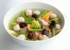 Bông cải san hô tách nhánh, ngâm, rửa sạch. Nấm đông cô khô ngâm nở, bỏ chân. Đậu Hòa Lan tước bỏ xơ, rửa sạch. Cà rốt gọt vỏ, tỉa hoa. Cho rau củ vào nồi sườn, tiếp đến là nấm đông cô, vê giò sống thả vào, đun sôi đều, nêm gia vị vừa miệng, tắt bếp.
