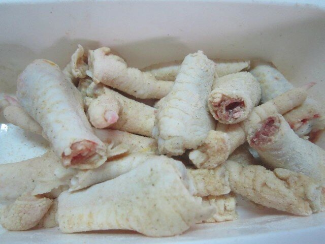 - Cho bột chiên vào trộn chung với chân gà, để 15 phút cho chân gà ngấm bột chiên