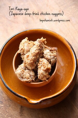 Bước 1: Gà làm sạch, lọc bỏ xương, cắt miếng vừa ăn.Bước 2: Bằm nhỏ tỏi. Trộn tỏi với xì dầu, đường, giấm gạo, rượu sake (nếu thích), bột gừng (hoặc gừng tươi) trong tô cho đến khi đường tan đều. Cho gà vào tô, trộn thật đều với hỗn hợp sốt này. Ướp gà với sốt ít nhất 2 tiếng đồng hồ (nếu có thể nên để qua đêm) trong ngăn mát tủ lạnh.Bước 3: Sau khi ướp gà xong, trộn bột với vừng. Nhúng từng miếng gà vào hỗn hợp bột - vừng này.Bước 4: Cho gà vào chảo rán ngập dầu ở lửa vừa cho đến khi gà chín vàng và nổi lên trên thì vớt ngay ra đĩa có lót giấy ăn cho bớt dầu.