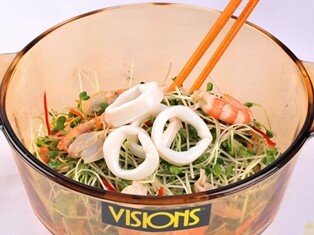 Rau mầm cung cấp nhiều chất xơ, vitamin cho cơ thể. Vị ngòn ngọt, hơi đắng, pha lẫn chút hăng hăng có trong rau mầm kết hợp chung với các loại hải sản sẽ rất thu hút.