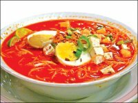 Màu trắng của bún, sắc xanh của rau, đỏ của tôm, nâu của mộc nhĩ, thêm vài lát cà chua thái múi cau cùng nước dùng ngọt lịm, cả nhà bạn đã có một món khó quên ngày cuối tuần.