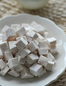 Khoai môn gọt vỏ cắt khối vuông khoảng 1 cm