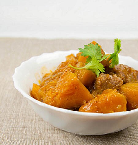Thời gian nấu nhanh hay lâu là tùy vào bạn thích bí đỏ nhừ độ nào, tuy nhiên không nên nấu bí kỹ quá, bị nát không ngon. Mình chỉ nấu bí đến mềm và nước cạn còn khoảng 1/3. Nếu bạn muốn nước hầm có độ sánh có thể hòa chút bột ngô rồi cho vào.