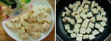 Đặt chảo lên bếp, đun nóng chút dầu ăn rồi cho đậu vào chiên