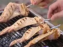 3. Nướng chín cánh gà trên lửa than, khi nướng phết đều nước ướp, để thịt không bị khô.