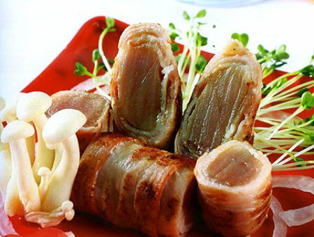 Cuộn thịt xông khói xung quanh miếng cá. Lần lượt làm cho đến hết.