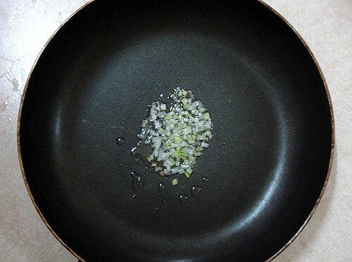 Bước 2: Hành khô băm nhỏ, cho chút dầu ăn vào phi thơm.