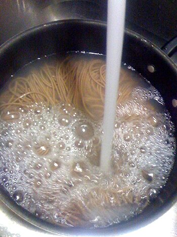 Nước đun sôi, không cho muối nhé. Sau khi nước thật sôi các bạn cho mỳ soba vào. Dùng đũa đảo đều trong nồi, không đậy nắp, lửa hơi lớn nhé. Lưu ý nên để cho nồi nước luôn sôi. Tùy theo cọng soba lớn hay nhỏ, mà thời gian từ 7 – 10 phút. Khi mua về trên bao bì sẽ huớng dẫn, các bạn lưu ý nhé.