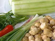 - Nấm rơm rửa sạch, cắt đôi dọc. Hành lá, ngò rí rửa sạch, cắt khúc.