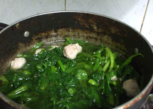 Sau đó cho rau bí , tỏi băm vào đun đến khi rau chín , nêm hạt nêm vừa ăn