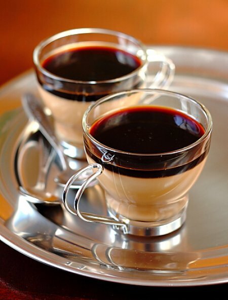Cho sữa, kem tươi và đường và một cái nồi, đun nóng già đến khi đường tan hết. Cho nước gelatin vào đun cùng, nguấy đều tay, khi vừa sôi lăn tăn thì cho cà phê vào rồi tắt bếp.