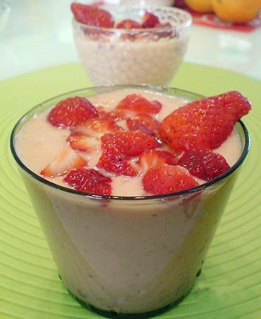 Rót ra ly, trang trí thêm những quả dâu tây. Uống liền.