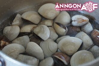 Nghêu rửa sạch rồi cho vào nồi luộc với chút nước.