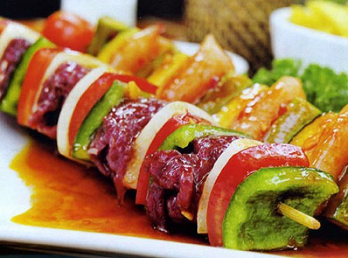 Dùng que xiên các nguyên liệu xen kẽ nhau tạo thành que xiên màu sắc bắt mắt (cá xiên 1 que và thịt bò xiên 1 que). Cho hai que xiên đã ướp gia vị nướng trên bếp than khoảng 2 phút là được (trong khi nướng nên đảo liên tục để nguyên liệu chín đều). Khoai tây gọt vỏ thái que và chiên vàng..