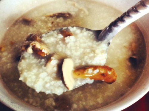 Trưa hôm đó, ngồi ăn cháo nấm tràm cùng mấy người dân địa phương. Nấm tràm đắng, nhưng ăn một tai xong mà chiêu chút nước lạnh là thấy ngay cái hậu ngọt của thứ nấm này. Bởi đắng, trong tiếng Anh, nấm tràm có tính ngữ bitter đứng trước từ bolete.