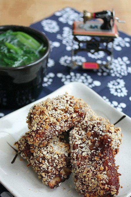 Sau đó lấy ra, lăn qua vụn bánh mỳ một lần nữa, tẩm kỹ sao cho vụn bánh mỳ bao kín lấy miếng sườn. |