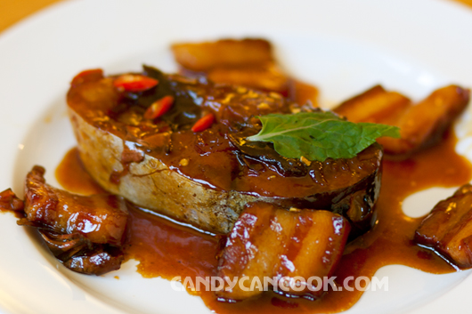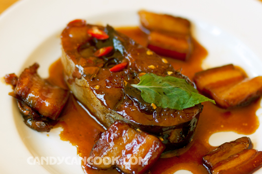 Món cá kho - Bí kíp gia truyền từ bà nội và mẹ được điểm tô với một chiếc lá từ cây húng bạc hà tớ đang trồng ^^