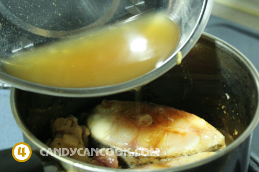 - Bắc nồi cá đã ướp lên bếp đun lúc đầu ở lửa to (high) cho sôi lên rồi đun khoảng 5 phút ở lửa vừa (medium) cho cá thấm gia vị. Lưu ý là đừng đảo gì cả nhé cả nhà vì đảo vào lúc nào rất dễ làm nát cá.