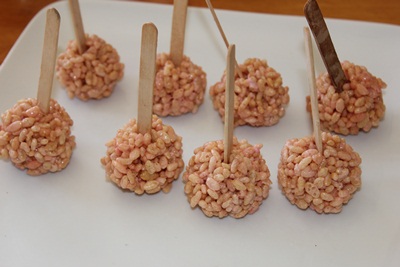 Chia ra từng nhúm nhỏ và cắm cây kem vào. Làm nhanh tay vì khi khô lại, nó dính cứng ngắt mà nếu chưa vo thì nó sẽ không dính lại được.