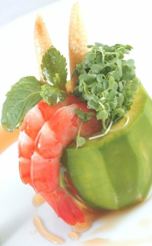 Món salad có vị tôm ngọt hòa quyện trong hương thơm lá bạc hà và vị béo của bơ ngon tuyệt.