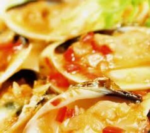 Bắc chảo dầu phi thơm tỏi cho sa tế vào rồi cho nghêu + nước luộc nghêu vào .đảo đều tay cho ngấm rồi nhắc xuống